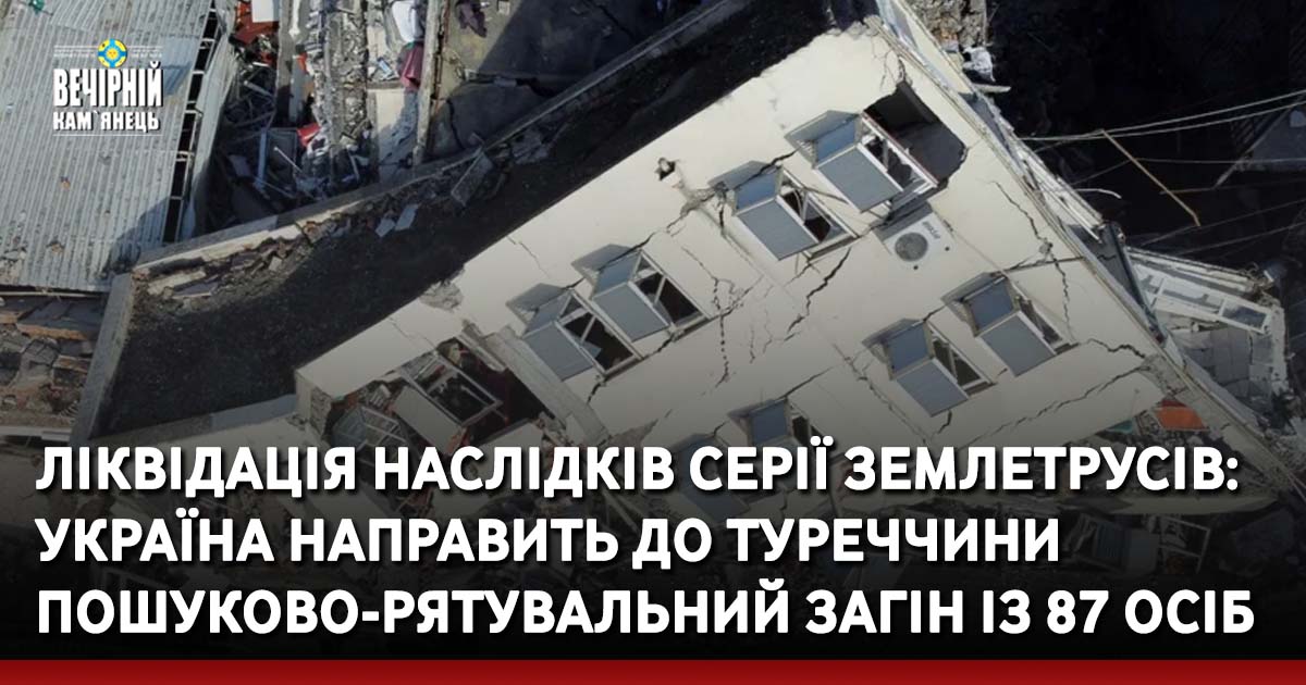 Україна направить до Туреччини пошуково-рятувальний загін ДСНС із 87 осіб для ліквідації наслідків серії руйнівних землетрусів.