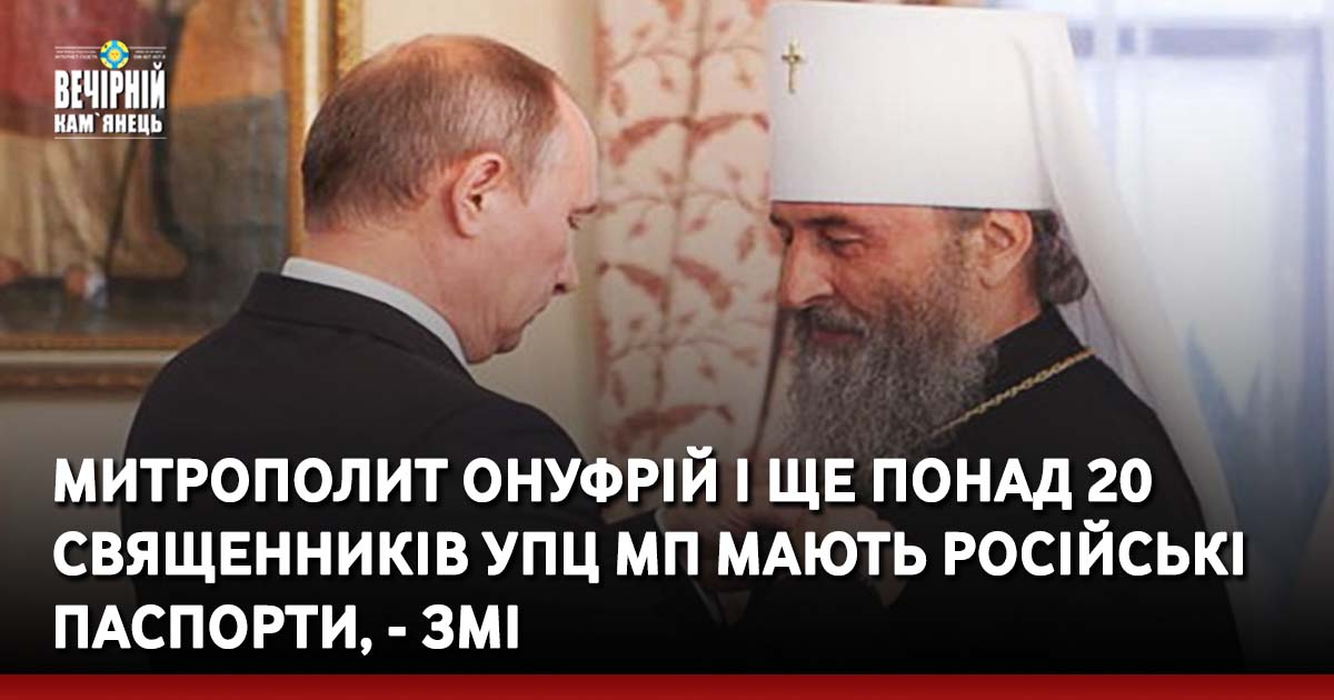 Митрополит УПЦ МП Онуфрій (в миру Орест Березовський) та ще понад 20 священнослужителів Української православної церкви Московського патріархату мають російське громадянство.
