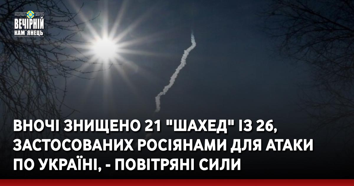Силами та засобами Повітряних Сил, у взаємодії протиповітряною обороною інших складових Сил оборони України, знищено 21 ударний БпЛА.