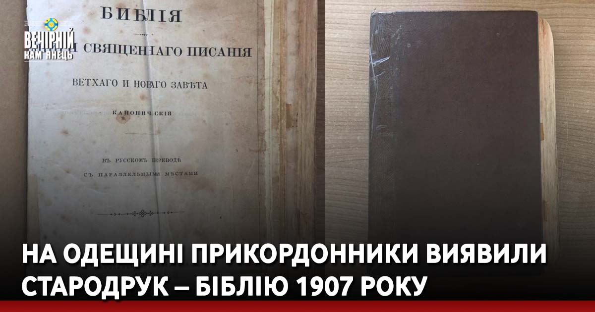 Біблію 1907 року випуску виявили прикордонники в пункті пропуску «Паланка-Маяки-Удобне», що на кордоні з Молдовою.