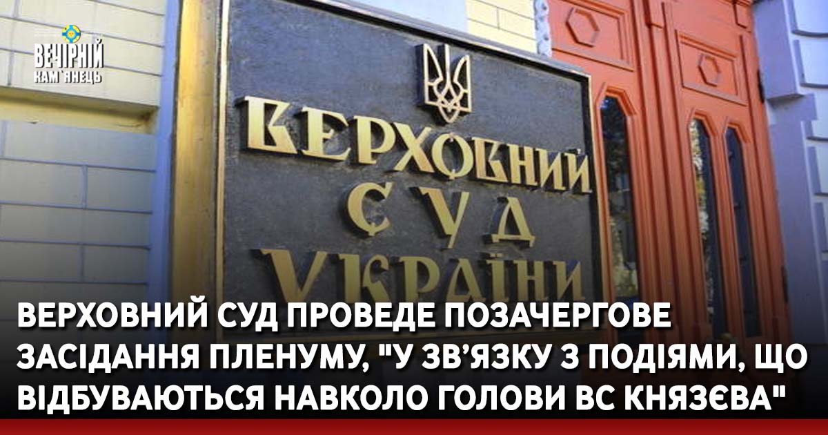 "У зв’язку з подіями, що відбуваються навколо Голови ВС Князєва В.С., 16 травня 2023 року відбудеться позачергове засідання Пленуму Верховного Суду. Час буде повідомлено додатково", - йдеться у дописі.