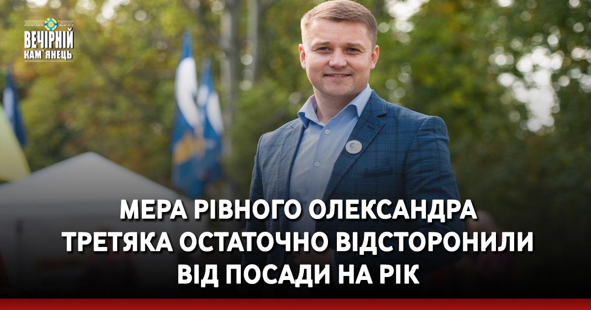 Рівненський апеляційний суд остаточно на рік відсторонив з посади мера Рівного Олександра Третяка. Його визнали винним у порушенні конфлікту інтересів, а також оштрафували на 6,8 тис. грн.