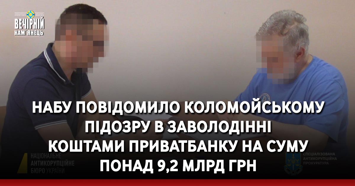 7 вересня 2023 року детективи НАБУ за погодження керівника САП повідомили колишньому кінцевому бенефіціарному власнику ПАТ КБ «ПриватБанк» та п’ятьом членам організованої ним групи про підозру у заволодінні коштами банку на суму понад 9,2 млрд грн.