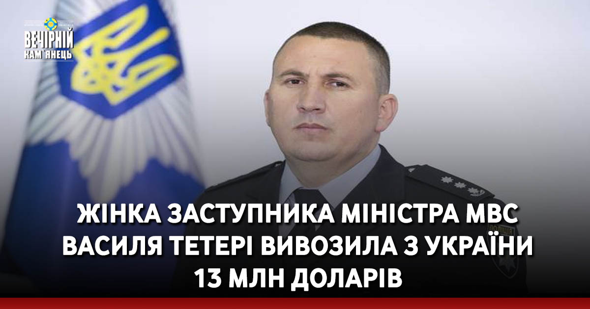 Дружина заступника міністра внутрішніх справ Василя Тетері вивезла із України в Угорщину 13 млн доларів.
