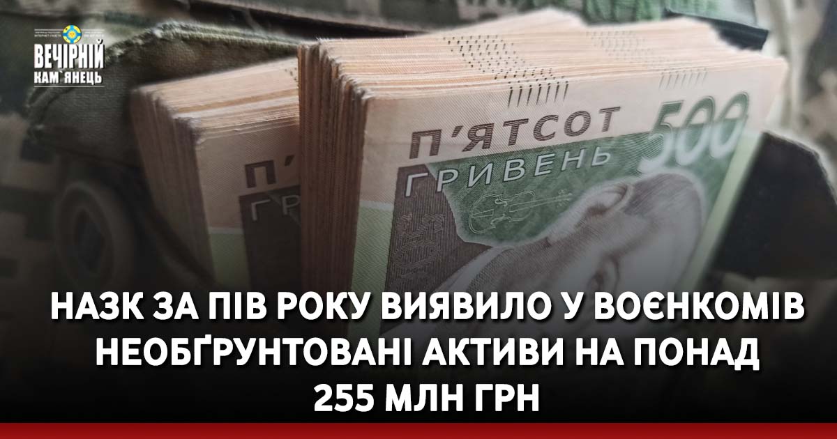 Агенція заявляє, що під час моніторингу способу життя керівників військкоматів було виявлено необґрунтовані активи чи ознаки незаконного збагачення на понад 255 млн грн – ці гроші виявили за останні пів року.