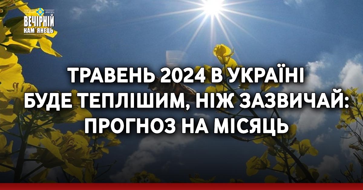 Погода у травні 2024 в Україні буде теплішою, ніж зазвичай. Про це свідчать дані Українського гідрометцентру.
