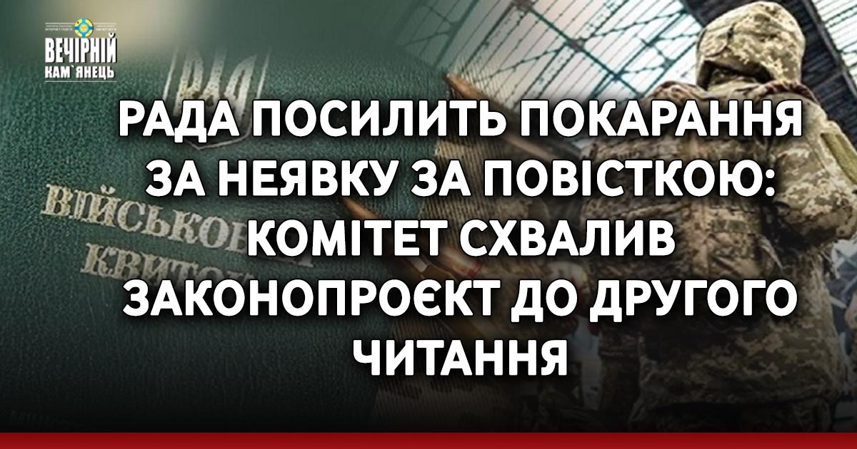 Комітет Верховної Ради з питань правоохоронної діяльності рекомендував ухвалити у другому читанні законопроєкт "Про внесення змін до Кодексу про адміністративні правопорушення та Кримінального кодексу України щодо посилення відповідальності за військові правопорушення", який передбачає суттєве посилення покарань за порушення військового обліку та ухилення від мобілізації.