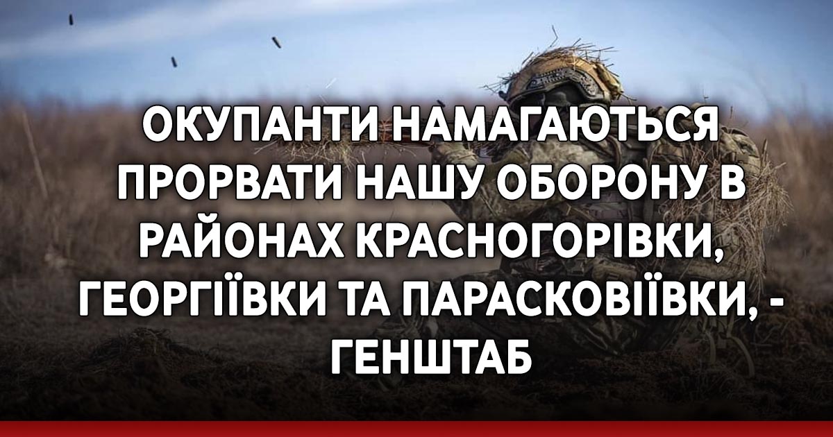 На Курахівському напрямку противник намагається прорвати нашу оборону в районах Красногорівки, Георгіївки та Парасковіївки. Чотири атаки загарбників українськими воїнами успішно відбито. Триває штурм біля Красногорівки.