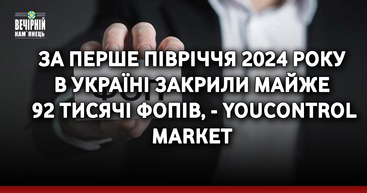 За даними YouControl.Market, за перше півріччя 2024 року в Україні закрили майже 92 тисячі ФОПів.