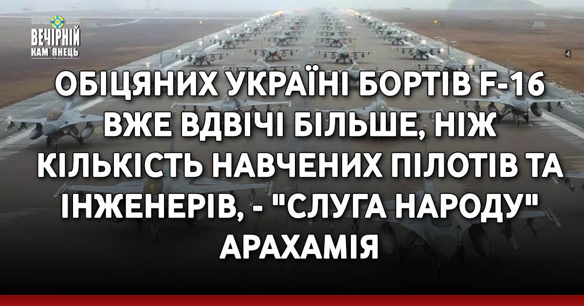 Голова фракції "Слуга народу", член комітету з національної безпеки, оборони та розвідки Давид Арахамія заявив, що партнери пообіцяли надати Україні літаків F-16 вдвічі більше, ніж підготували пілотів.
