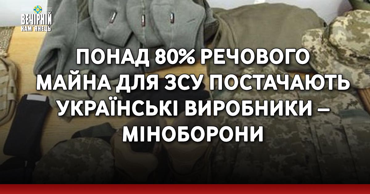 Частка вітчизняних виробників у загальному обсязі контрактування Збройних сил України речовим майном на сьогодні перевищує 80%.