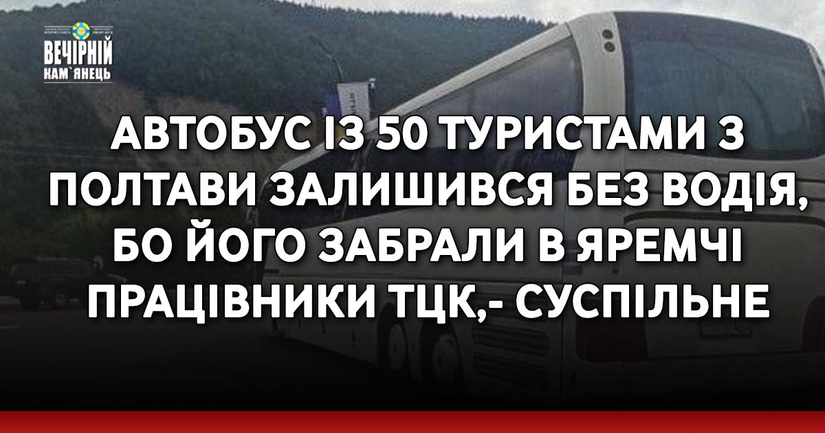 У Івано-Франківській області 30 серпня правоохоронці та працівники ТЦК затримали водія туристичного автобуса із Полтавщини, де перебували 50 людей. Це сталося у місті Яремче. Чоловік, з яким це сталося, був другим водієм автобуса, повідомляє Суспільне.