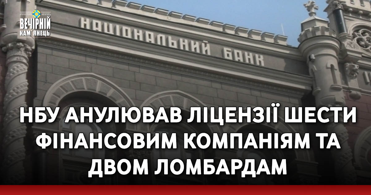 Національний банк України анулював ліцензії шести фінансовим компаніям та двом ломбардам у зв’язку з невиконанням рішення НБУ.