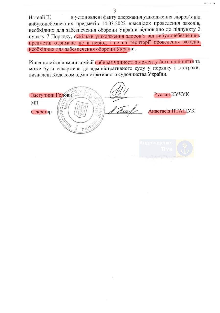 Проте, спеціальна міжвідомча комісія надіслала жінці відповідь “просту та однозначну — вона немає права на статус особи з інвалідністю внаслідок війни тому, що з 5 березня 2022 року в Маріуполі війни не було”.
