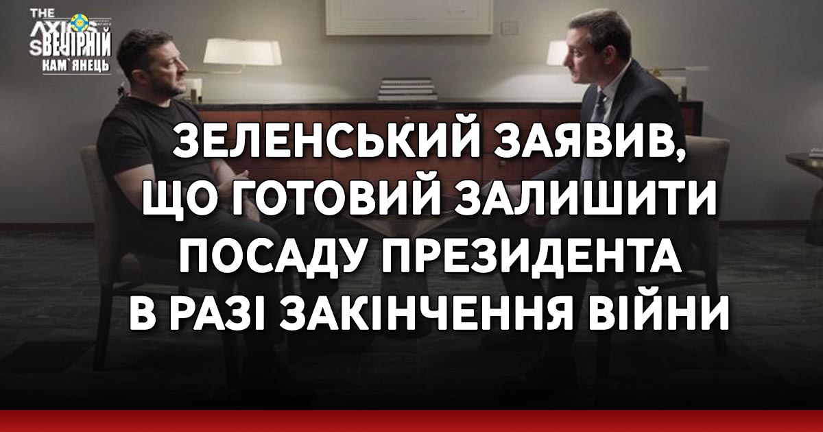 На запитання, чи вважатиме він свою роботу завершеною після закінчення війни, Зеленський відповів, що буде «готовий» піти у відставку. «Моя мета – завершити війну», а не продовжувати балотуватися на посаду, передає Axios слова глави держави, пише Радіо Свобода.