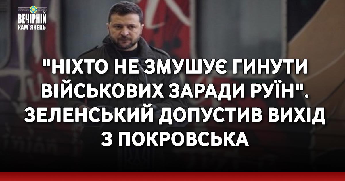 У новому інтерв'ю для Bloomberg президент Володимир Зеленський визнав, що ситуація в Покровську "дуже складна". З його слів випливає, що він не проти, щоб ЗСУ вийшли звідти, але рішення - за командирами на місцях.