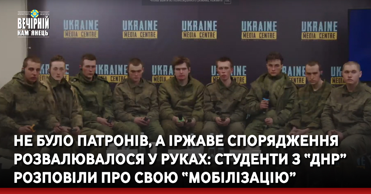 Російсько-окупаційні сили «мобілізували» на війну проти України студентів перших-других курсів з вишів, підконтрольних бойовикам «ДНР». Ті розповіли, що їх забрали на війну без проходження медкомісії, а у руки видали старе іржаве спорядження.