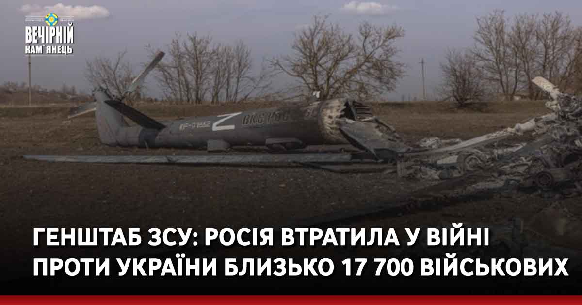 Росія втратила у війні проти України близько 17 700 своїх військових, повідомив Генштаб ЗСУ станом на 1 квітня.