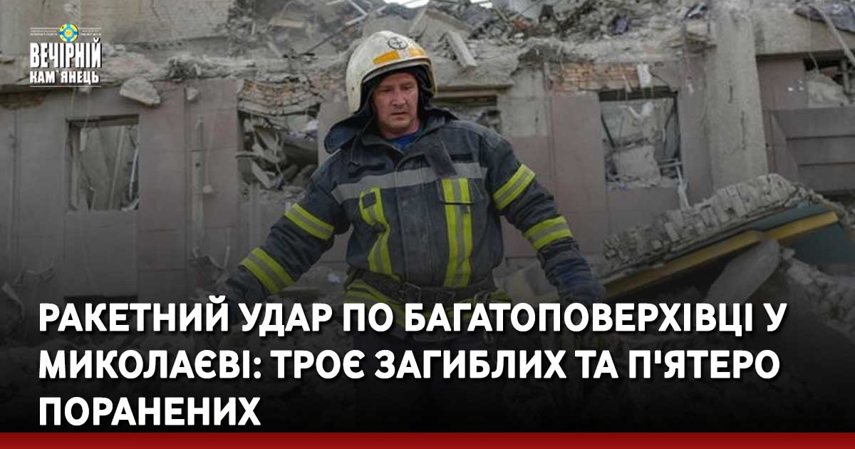 Троє людей загинули, ще п'ятеро отримали поранення внаслідок ранкового обстрілу Миколаєва російськими ракетами, також поранення отримав рятувальник.