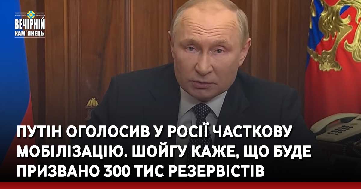 Президент рф володимир путін оголосив про часткову мобілізацію в росії. Він уже підписав указ. Надсилання людей на війну він назвав "необхідники кроками" для захисту територіальної цілісності росії.