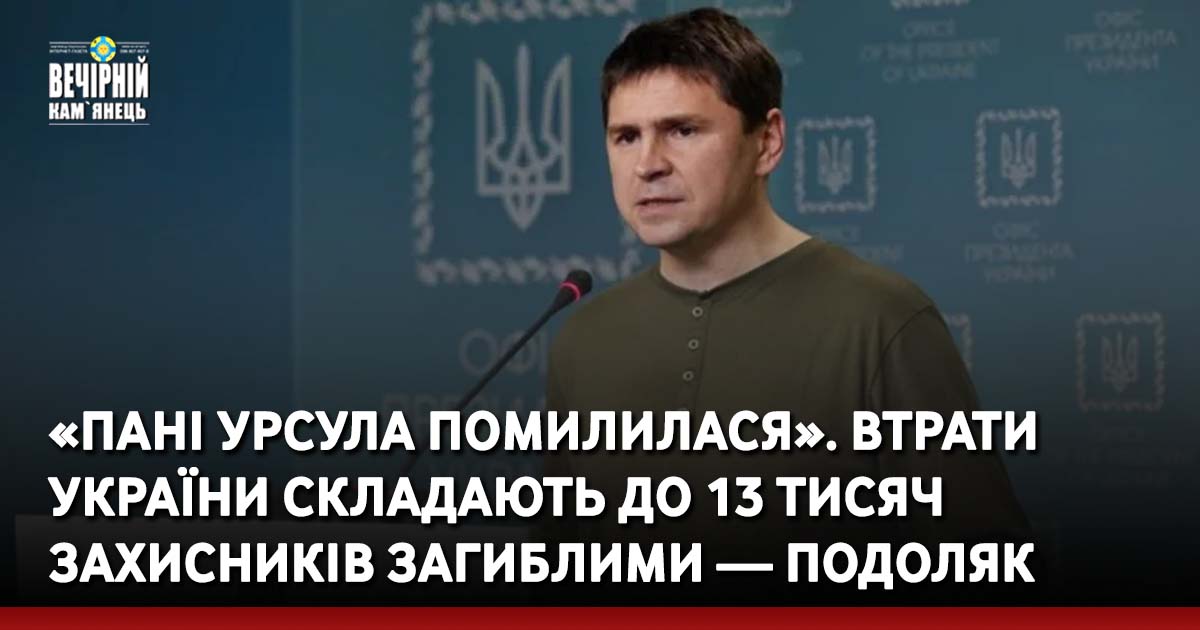 «Безперечно, пані Урсула помилилася — це очевидно. Тому вони видалили це відео, прибрали ці цифри — ми маємо офіційні оцінки Генштабу, які озвучує верховний головнокомандувач. Вони складають від 10 до 12,5—13 тисяч загиблих… Так, у нас більше втрат через поранення», — сказав він.