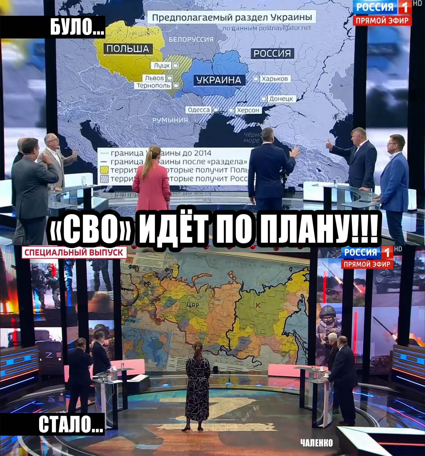 В етері федерального телеканалу заявили, що ЗСУ готують нищівний удар по російських силах і цьому сприяє Захід. Далі у програмі великим планом показали карту РФ в кабінеті Буданова і заявили, що такою буде Росія у разі поразки.