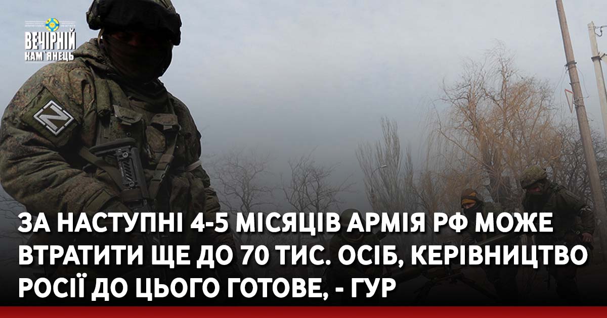 "За оцінками воєнної розвідки України, за наступні 4-5 місяців російська армія може втратити ще до 70 тисяч людей. І до таких втрат керівництво країни-окупанта готове", - додав Черняк.