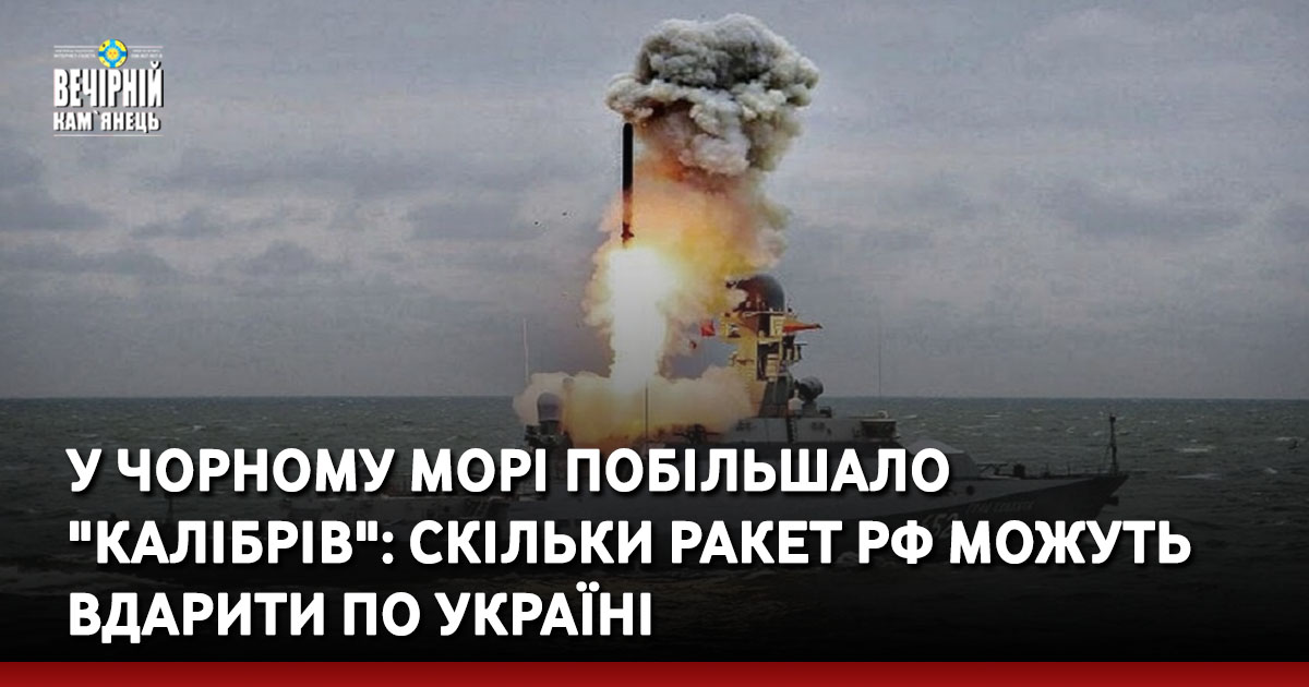 У Чорному морі російські війська тримають 16 кораблів, серед яких 6 носіїв крилатих ракет "Калібр", загальний залп складає близько 44 ракет.