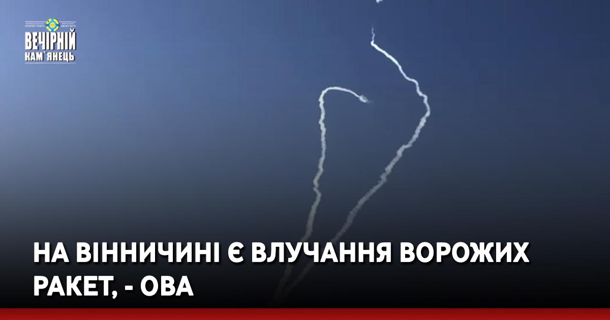 « На Вінниччині є влучання ворожих ракет. Постраждалих нема - повідомляє Вінницька ОВА