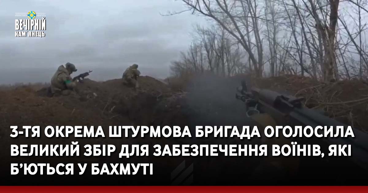 Ввечері 7 лютого 3-тя окрема штурмова бригада ЗСУ, яка сформована ветеранами Азова і нищить росіян у Бахмуті оголосила збір на необхідну амуніцію для українських воїнів.