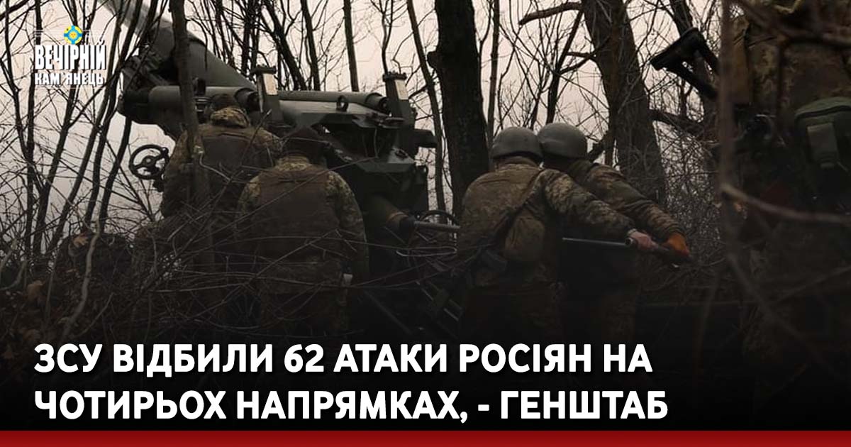 За минулу добу Збройні сили України відбили 62 атаки росіян на Лиманському, Бахмутському, Авдіївському та Мар’їнському напрямках. Найзапекліші бої тривають за Бахмут, Авдіївку та Мар’їнку.