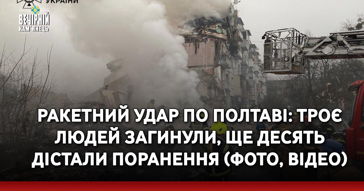 У Полтаві внаслідок ранкового російського ракетного удару по житловому будинку троє людей загинули і ще десять постраждали, серед них дитина.