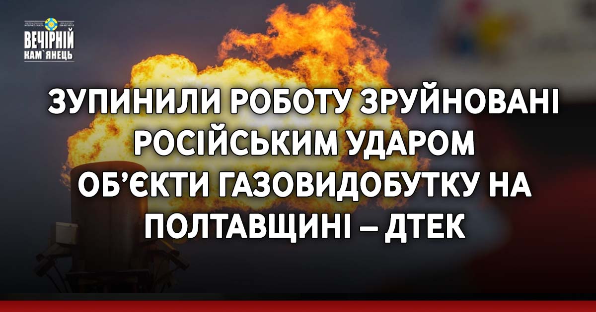 Сьогодні вранці об'єкти газовидобутку ДТЕК на Полтавщині були атаковані, що призвело до зупинки їх роботи через руйнування.